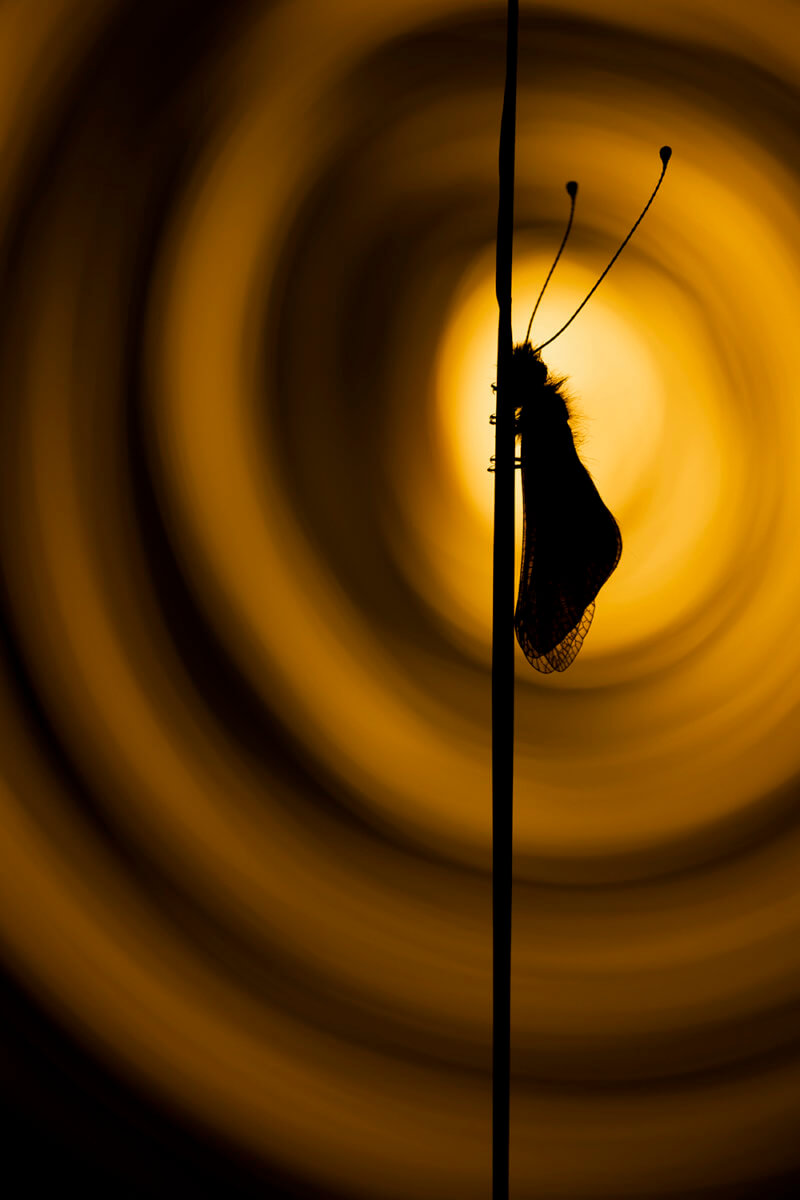 La plupart du temps on retrouve les ascalaphes en fin de journée posés sur des tiges de graminées. Il arrive néanmoins d’en retrouver de temps en temps sur des supports un peu plus originaux.