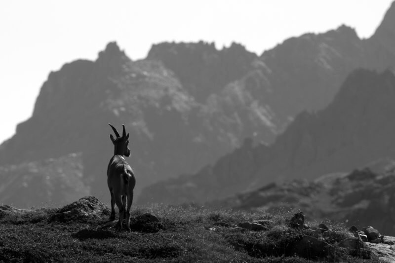 C’est lors de ma première randonnée en montagne que j’ai croisé mon premier bouquetin. Après une ascension un peu hasardeuse au milieu des névés et des éboulis d’ardoises pour arriver à des empreintes fossilisées de dinosaures, je suis retournés sur mes pas, me dirigeant vers le barrage où j'étais garé. Je suis alors tombé sur deux femelles bouquetins qui se sont tranquillement éloignées.