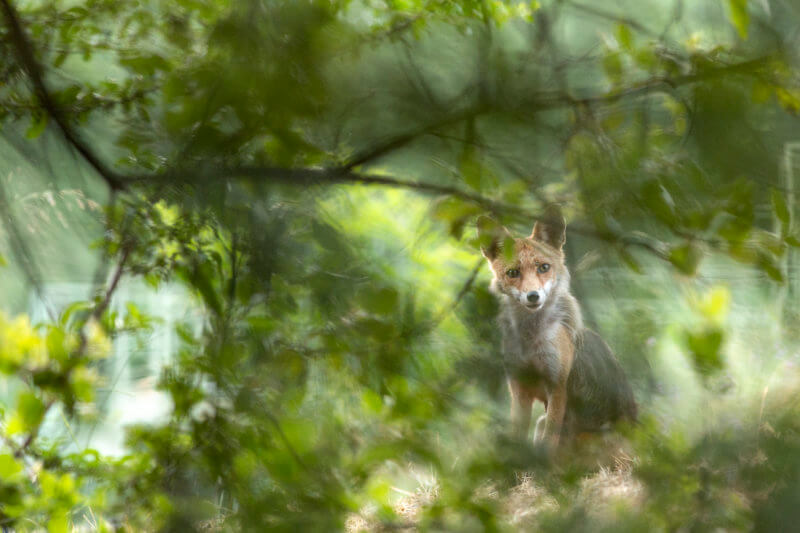 Une femelle qui aura profité du confinement pour mettre bas dans un lieu insolite. Celle-ci s'était installée sur le site de mon travail et est devenue plus diurne qu'habituellement. J'en ai donc profité pour lui tirer le portrait. Avec la reprise des activités humaines, elle, et ses renardeaux, sont redevenus rapidement discrets.
