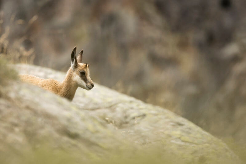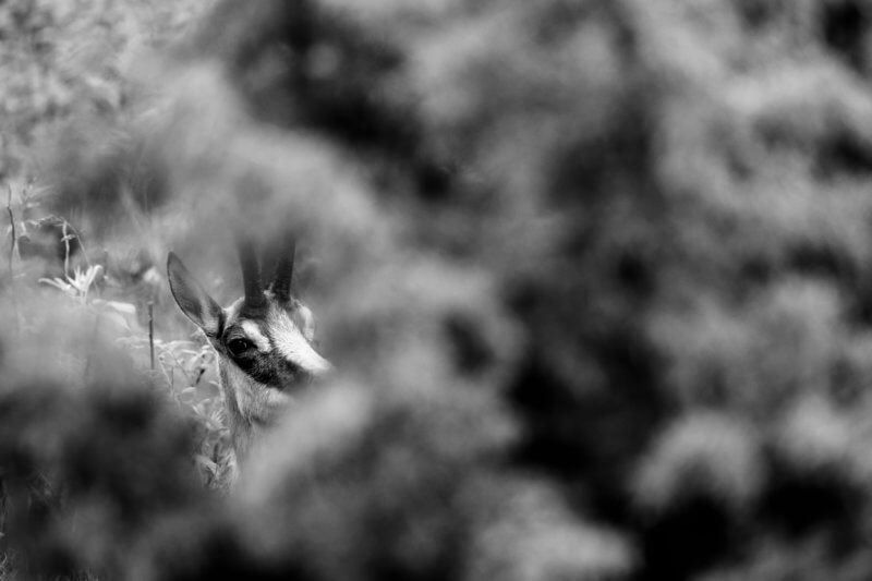J'ai croisé ce chamois sur le départ d'une randonnée. Il se cachait des autres bipèdes du parking à l'aide des arbustes environnants.