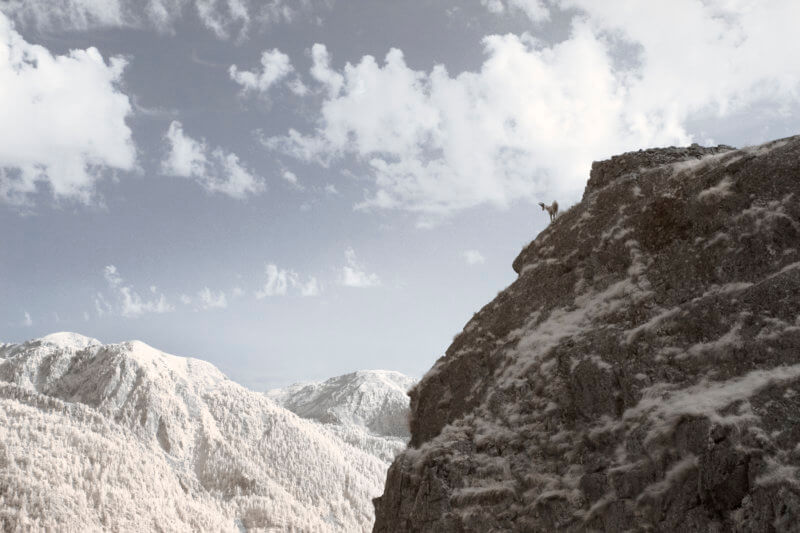 J'ai tiré le portrait de cette étagne du Mercantour en utilisant un appareil sensible aux infrarouges.